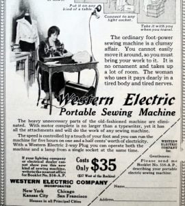 The emergence of the electric sewing machine had a big impact on 1920s women’s fashion. The majority of women had good sewing skills, as it was the desired homemaking skill. The electrical sewing machine made it easier to experiment with different designs at home. Mail-order catalogs picked up this trend and started including sewing patterns in their fashion sections. These were usually artistic drawings with the requisite measurements. Women kept a fresh sense of style by exchanging these patterns for different outfits.