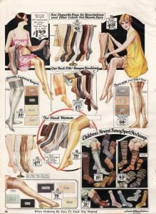 There’s a common misconception about the stockings in the 20s, which comes from the inauthenticity of the flapper costumes shown in Hollywood movies of the 50s and 60s. Hollywood most probably made you believe that all women wore fishnet stockings in the roaring 20s, which is completely untrue because they were only worn by showgirls back then. Here’s some info about the genuine styles of stockings in the 20s.