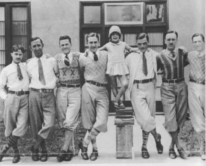 Men’s sportswear was gaining popularity; V-neck sweaters, raccoon coats, and leather jackets were popularized by men’s fashion icons such as Bill Tilden and Charles Lindberg. The Prince of Wales was also a big influence with his sweaters and knickerbockers (plus fours).