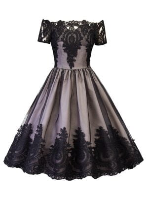 Women’s Off Shoulder Dress Polka Dot Patchwork Vintage Swing Dress