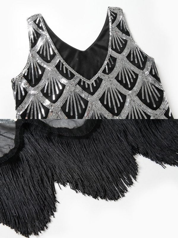 Women’s 1920s Dress Sleeveless Sequin Fringe Beaded Latin Dress