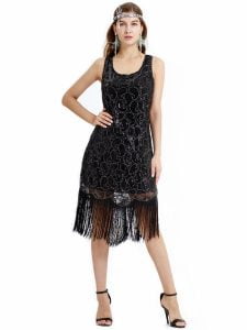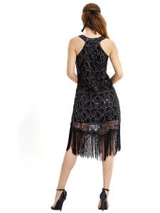 This stunning 20s fringed dress is made of soft polyester fabric. with blinking decorative beads & sequin pattern.