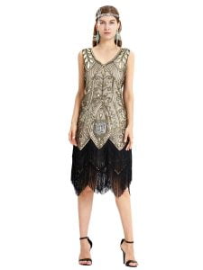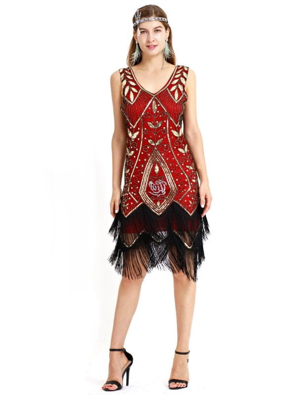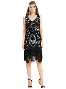 1920s Style Dress for Women Sequined V Neck Sheath Dress