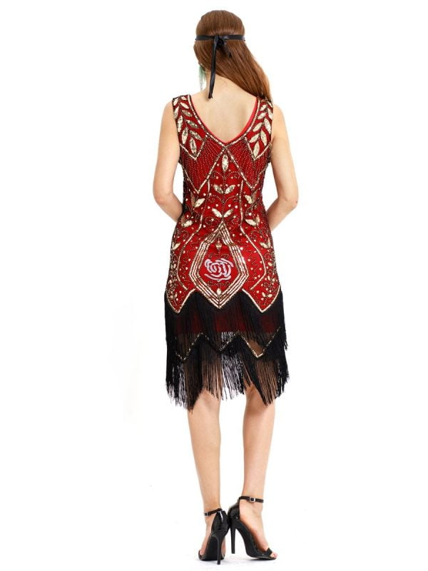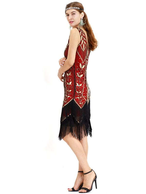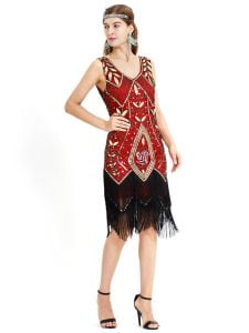 Women’s 1920s Dress Sleeveless Sequin Fringe Beaded Latin Dress