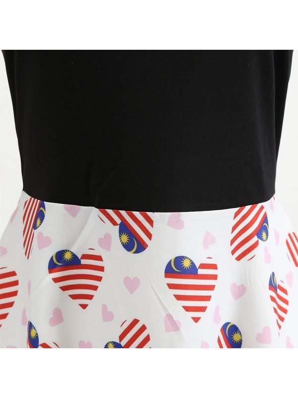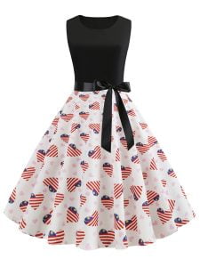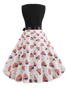 1950s Dress American Flag Heart Print Sash Design Swing Dress