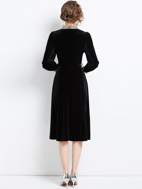 The unique lace embroidery neckline and cuffs embellish this black dress; The velvet fabric skirt is soft and comfortable. and the classic retro version is timeless;