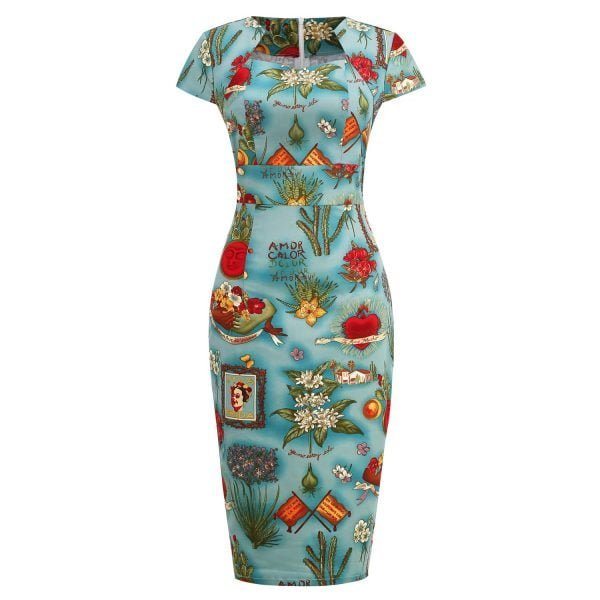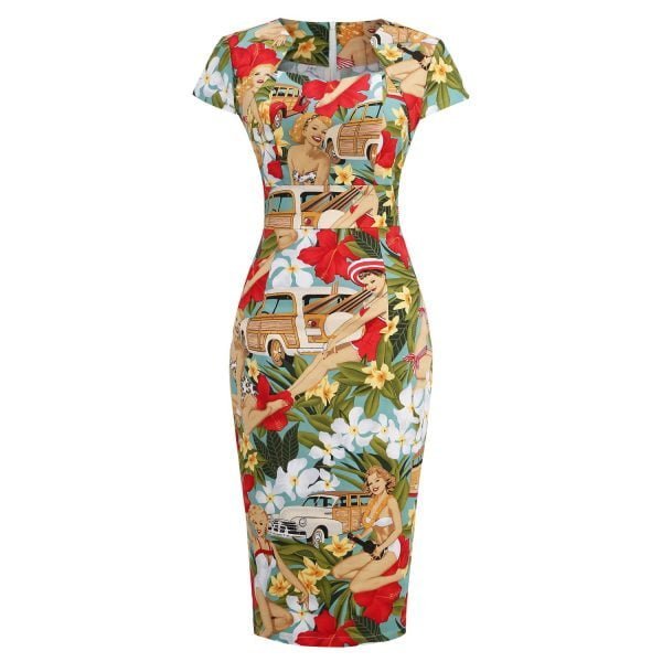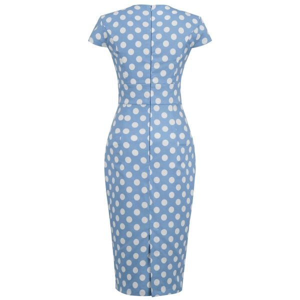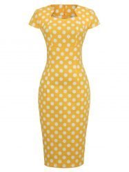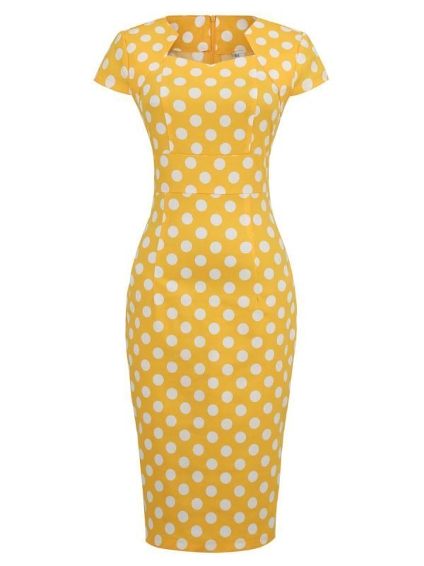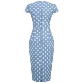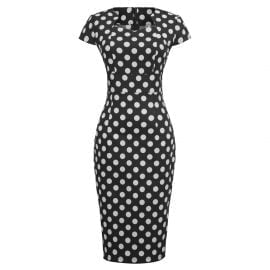 1950s Dress Polka Dot Print V-neck Short Sleeve Back Split Bodycon Dress