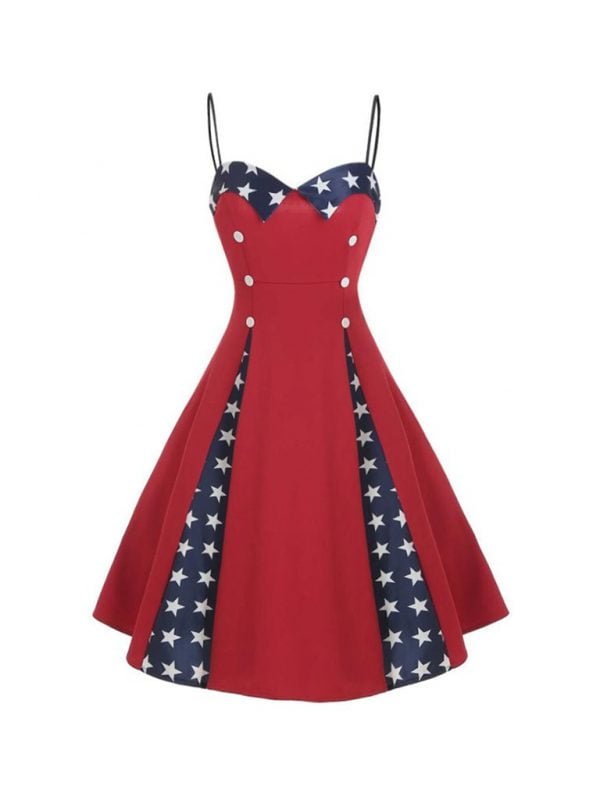 1950s Dress Split American Flag Strap Dress
