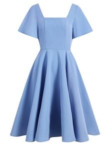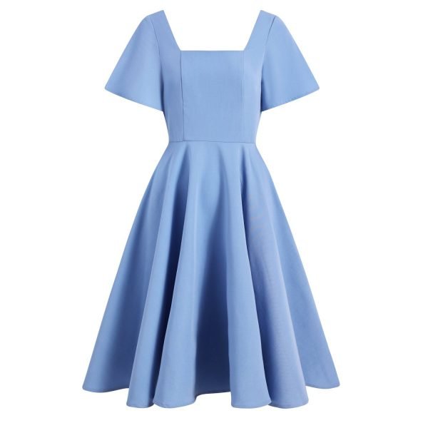 1950s Dress Square Collar Ruffled Sleeve Backless A-line Vintage Swing Dresses