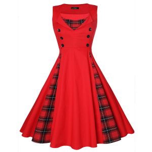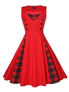 1950s Dresses Patchwork Sleeveless Midi Red Dresses