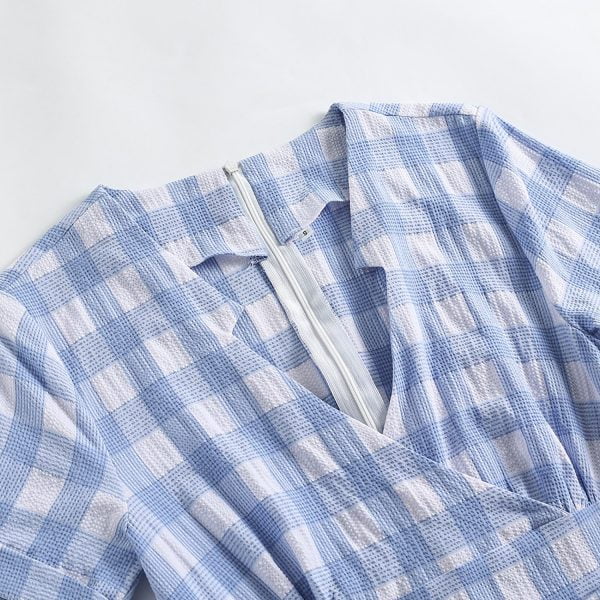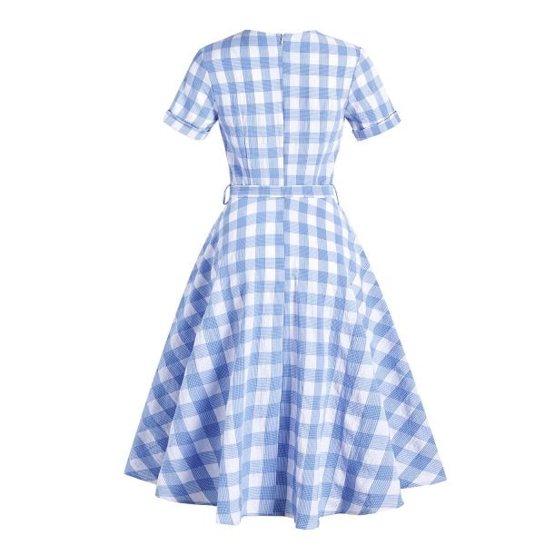 1950s Plaid Dress Short-sleeved Mid-waist Swing Dress