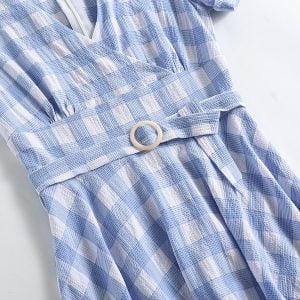 1950s Dresses Plaid British Style V-Neck Swing Dresses with Belt