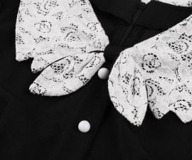 The cute lace stitched bow neckline makes this solid color dress unique and stylish; The classic high waist design perfectly shows your body curve and exudes your charm;