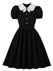 1950s Dresses Retro Lace Patchwork Neck Puff Sleeve A Line Dress