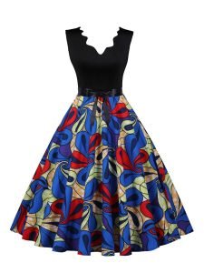 Retro Round Neck Sleeveless Lace Stitching Print Dress