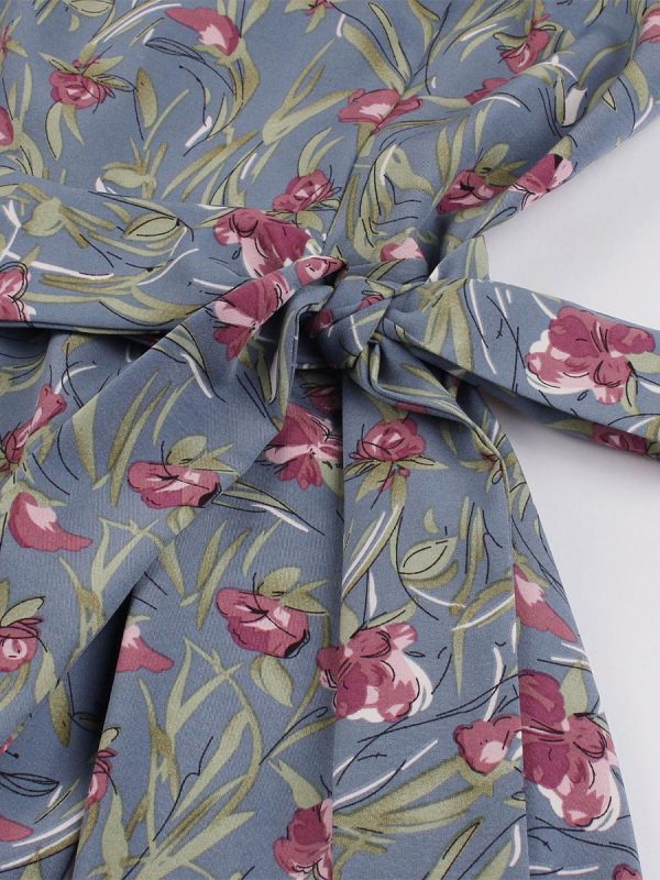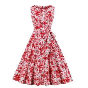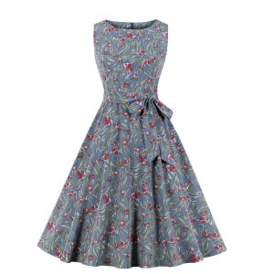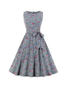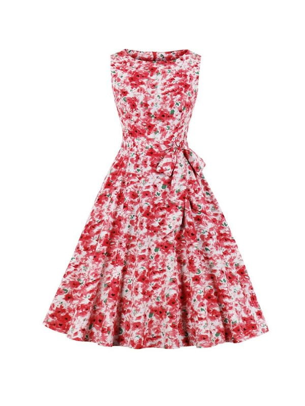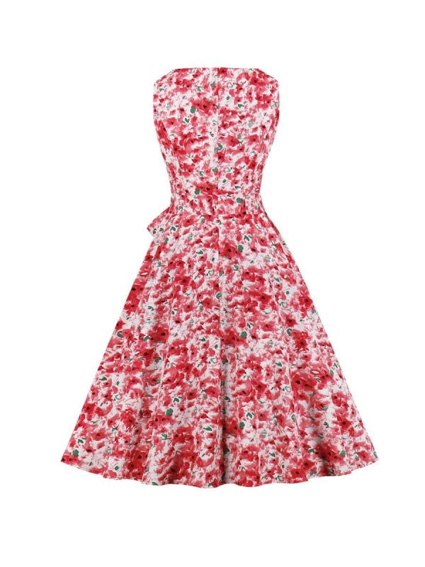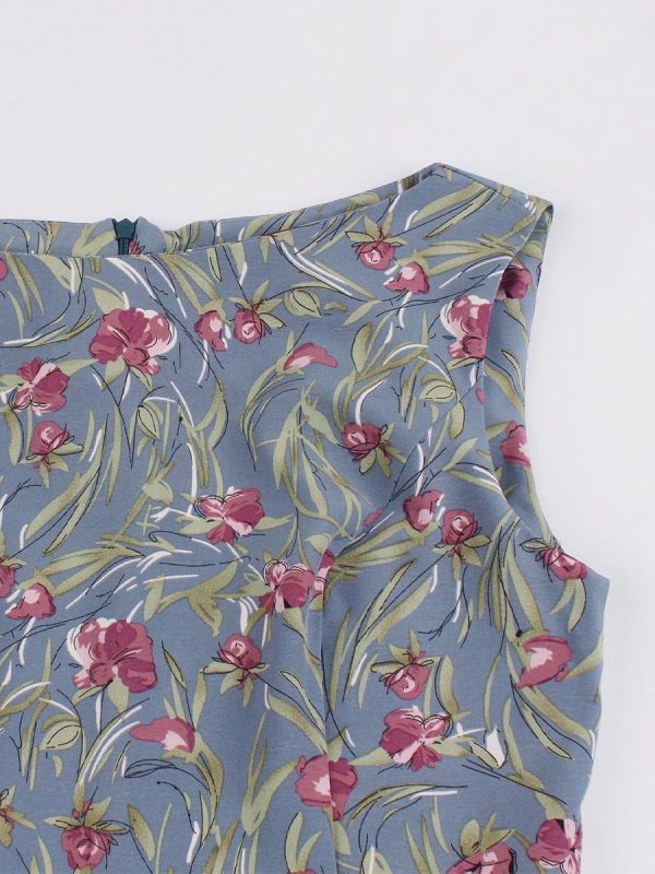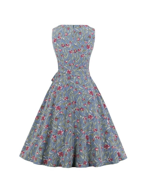 1950s Floral Dress Sleeveless O Neck Fresh Style Knee Length Dress