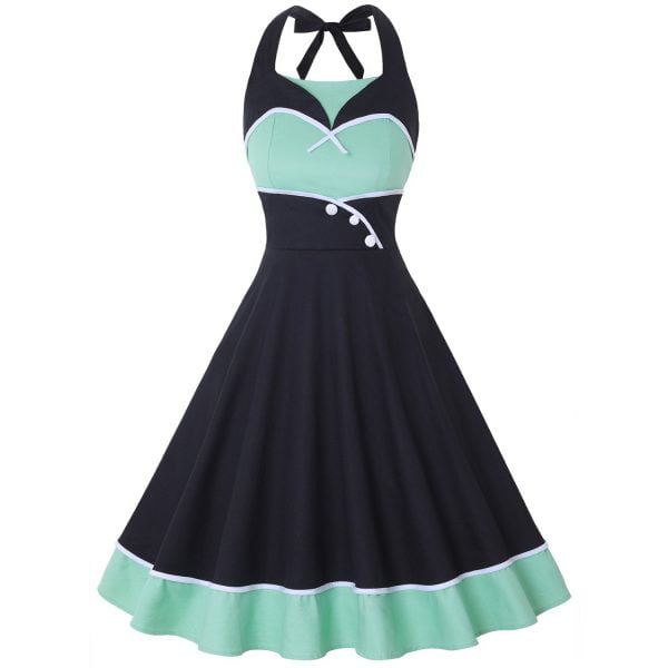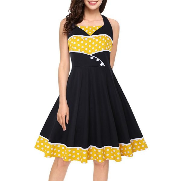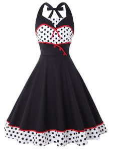 1950s Polka Dot Dress Halter Neck Retro Swing Dress