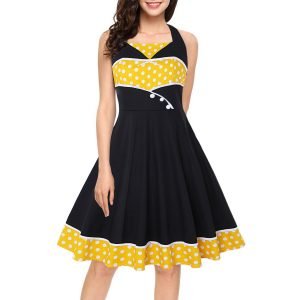 Categories: 1950s Dresses, Halter Dress, Polka Dot Dress, Swing Dresses