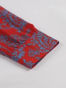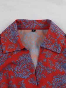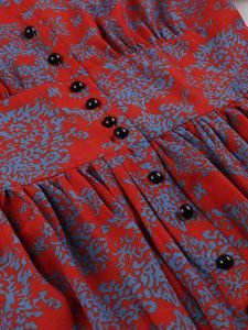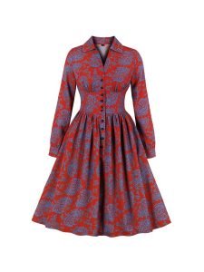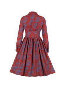 1950s Red Dress Floral Breasted Long Sleeve Knee-length Dress