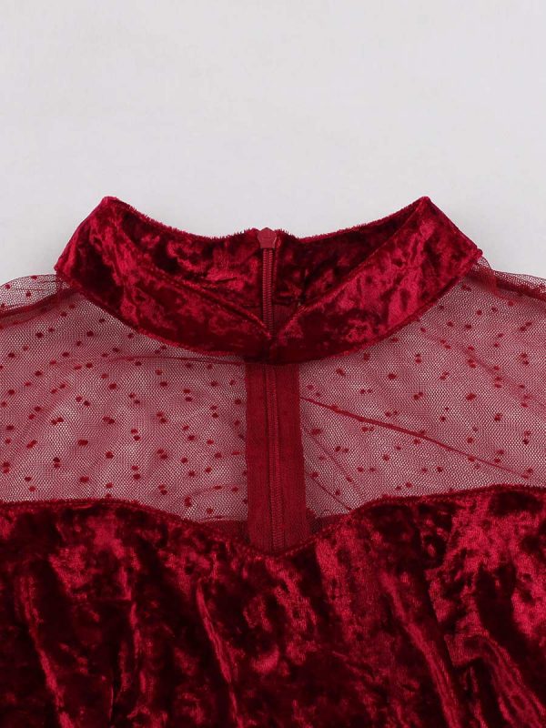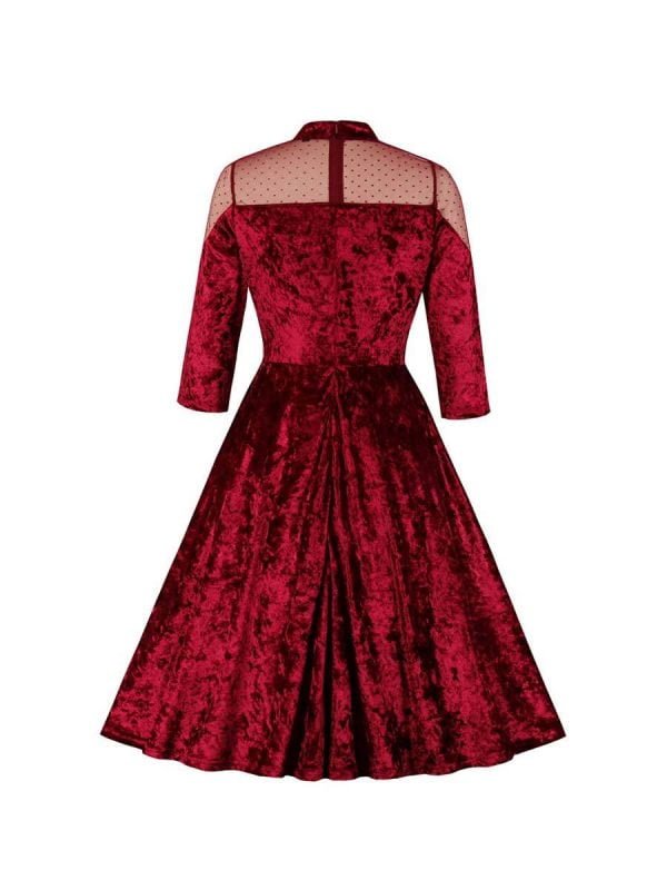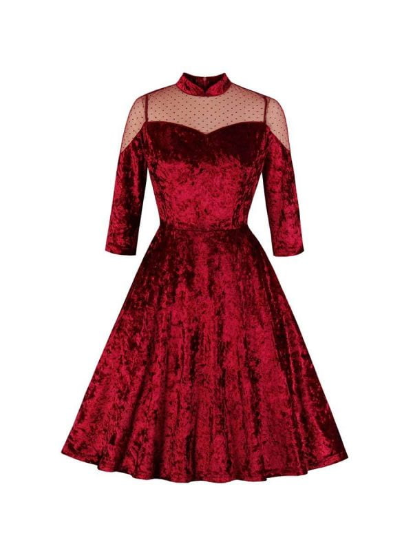 1950s Swing Dress Half Sleeve Elegant Velvet Dress