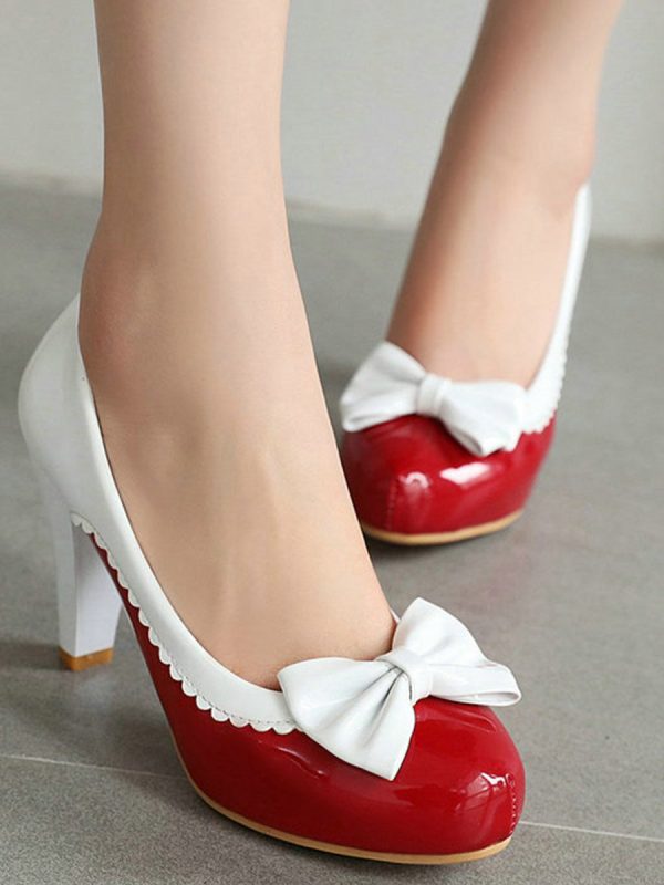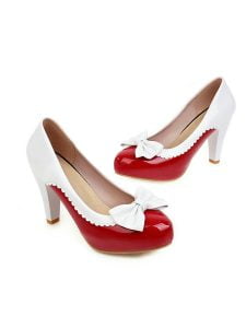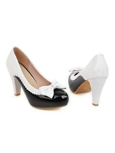 1950s-shoes-bowknot-round-toe-high-heels-shoes