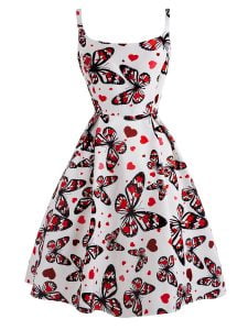1950s Vintage Slip Dress Butterfly Print Midi Dress