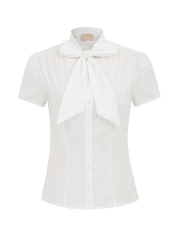 1960s Short Sleeve Blouse for Office Lady with Bow Tie