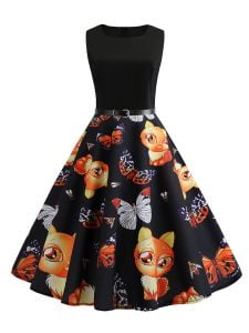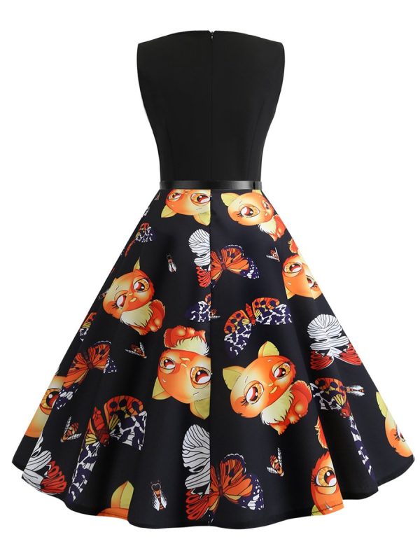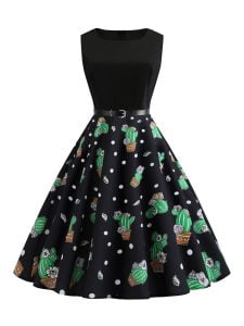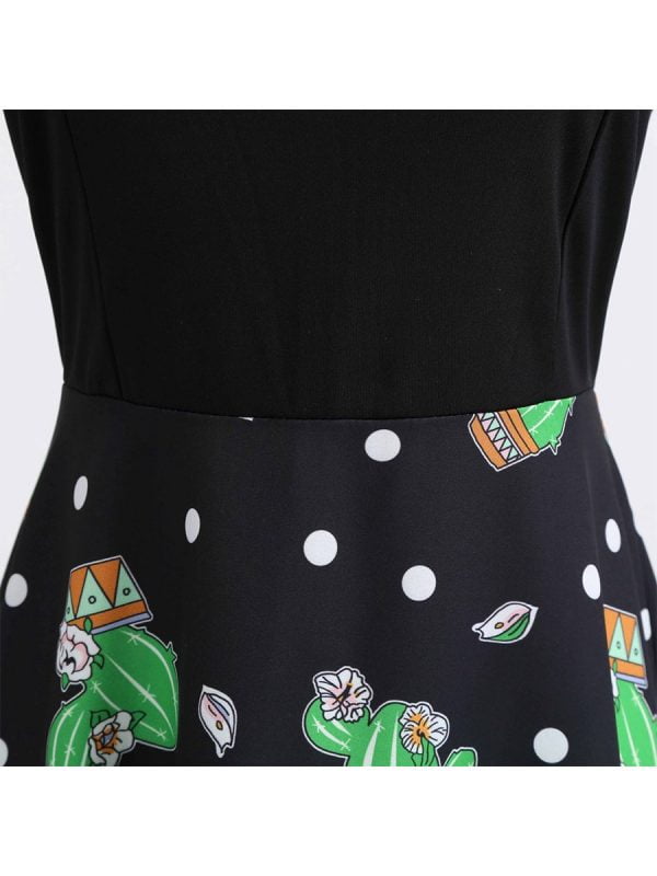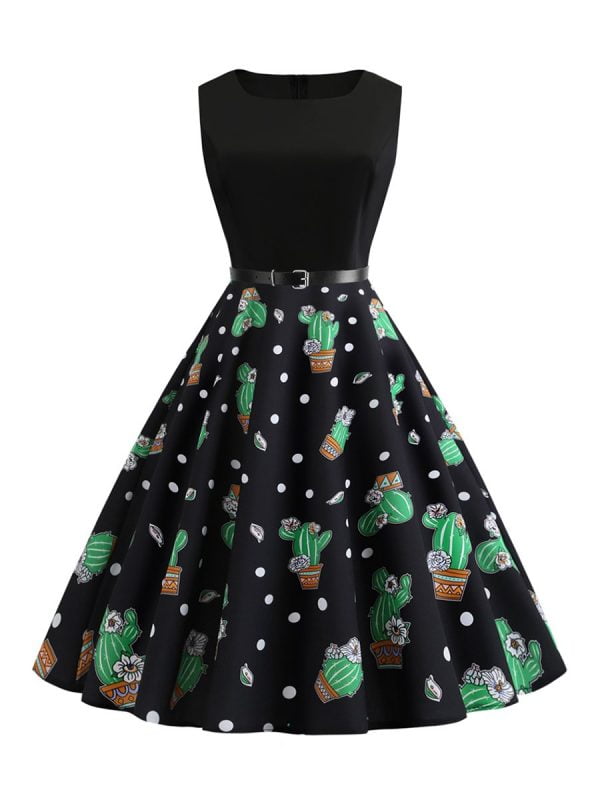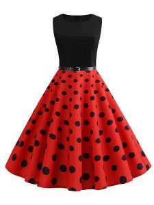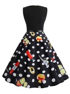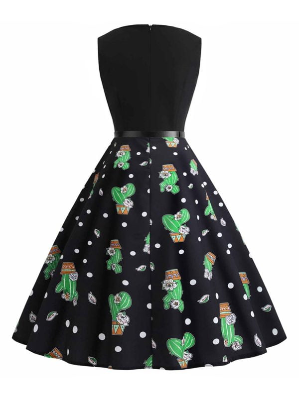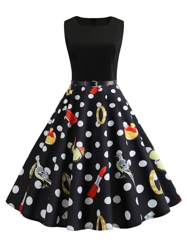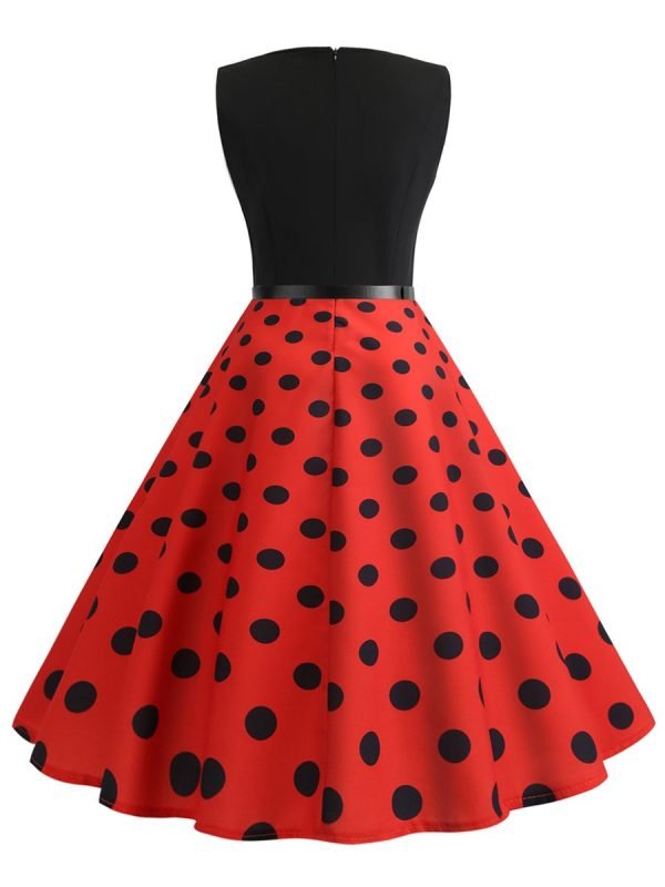 50s Dress Polka Dot Patchwork Sleeveless A Line Dress