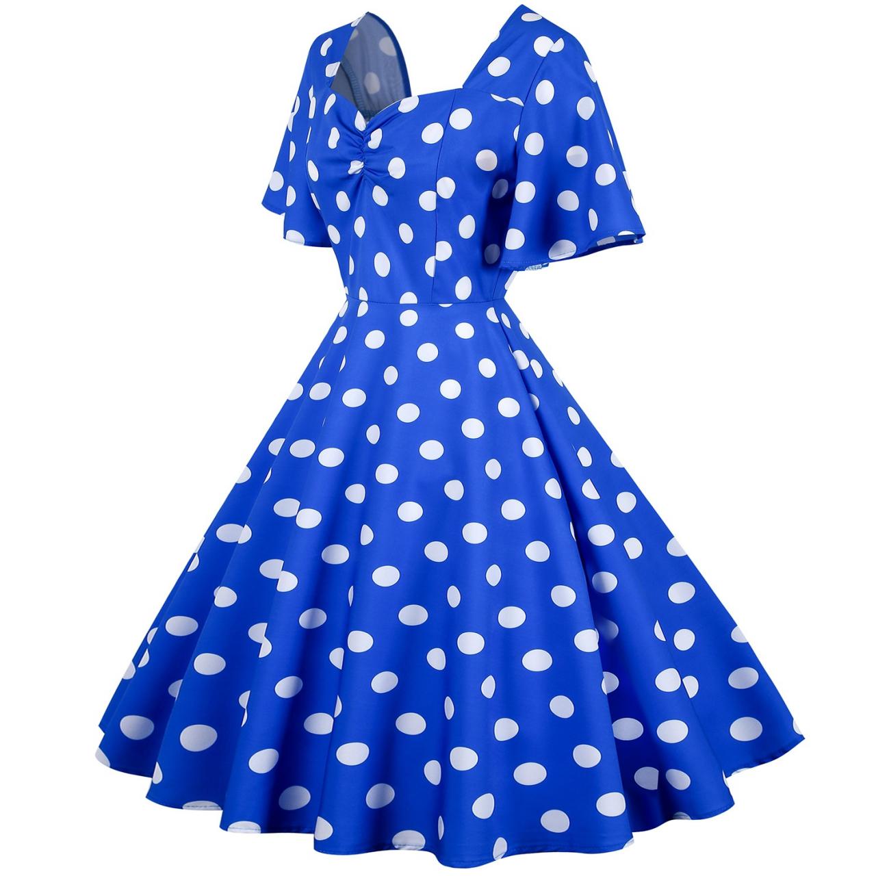 1950s Dresses Retro Polka Dot A Line Swing Dress
