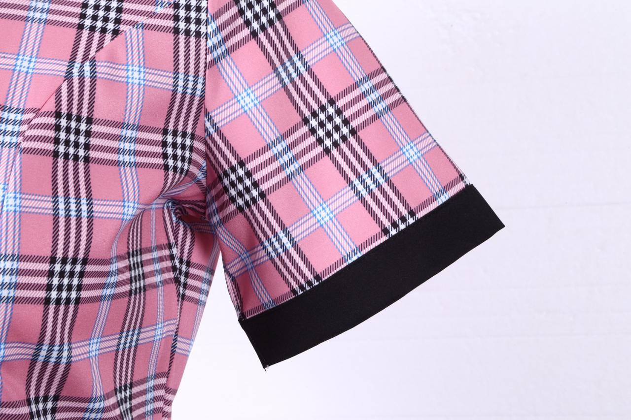 vintage-retro 50s Dresses Single Breasted Short Sleeve Belt Design Plaid Dresses
