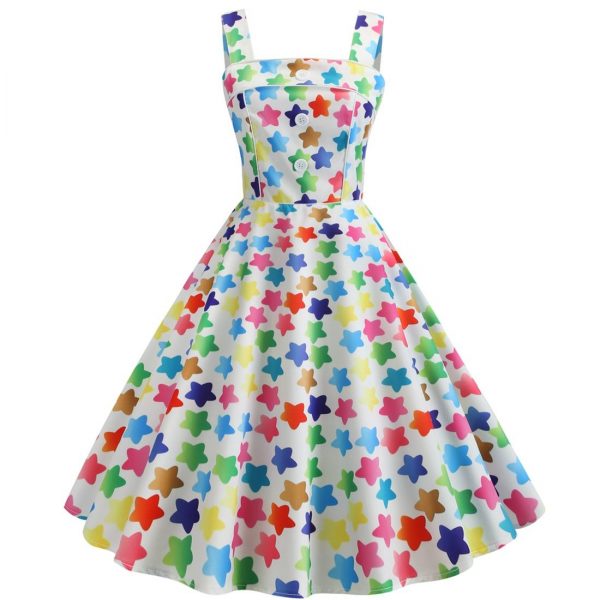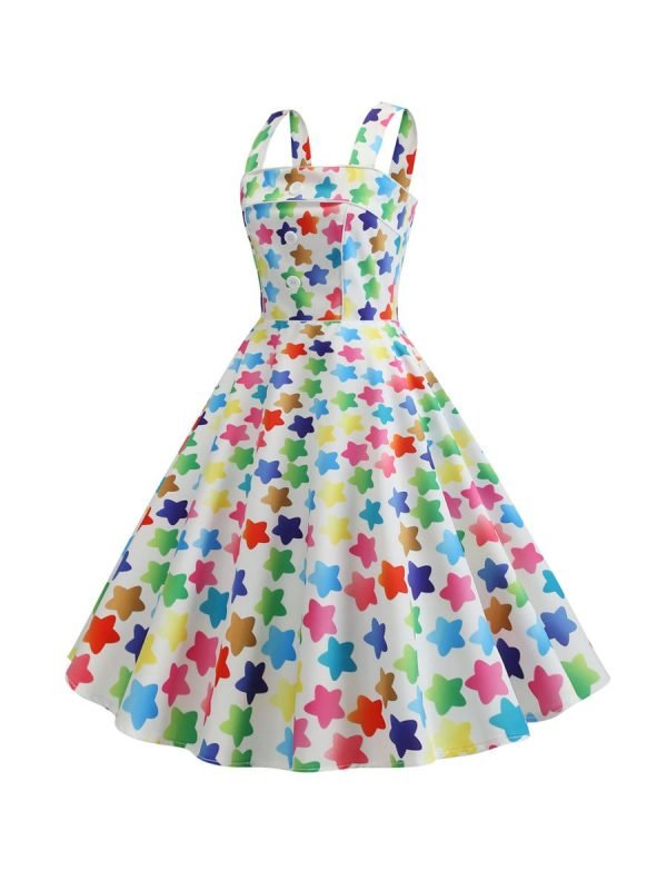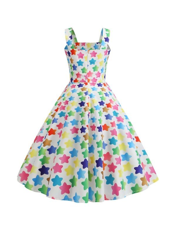 50s Women’s Summer Dresses Stars Print Swing Dress