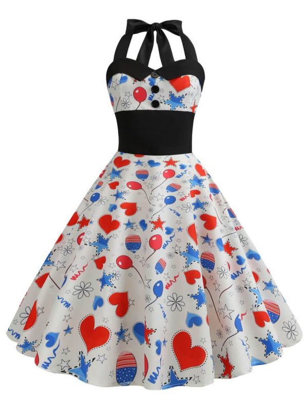 Categories: 1950s Dresses, American Flag Dress, Halter Dress, Swing Dresses