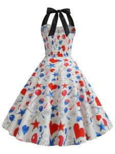 American Flag Dress A-line Halter Knee-length 1950s Patriotic Clothes