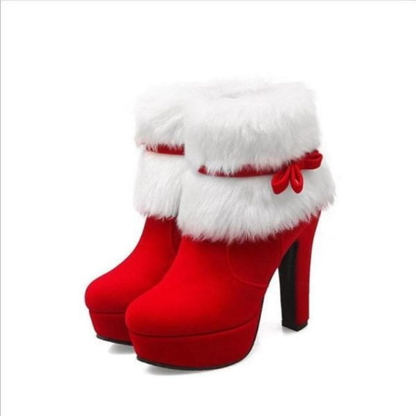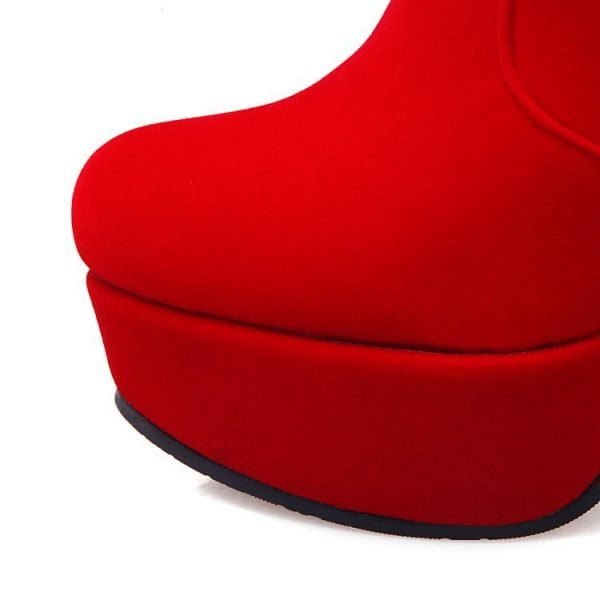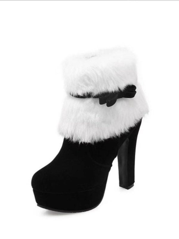 Ankle Boots Retro Suede Plush Bow Platform Side Zipper High Heels