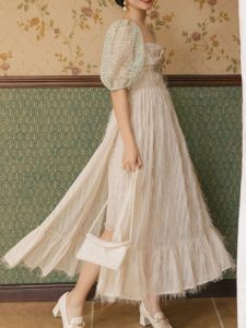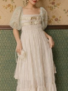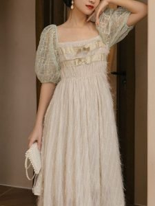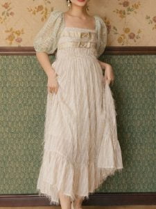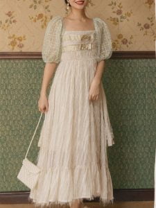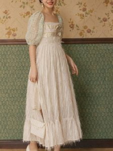 Apricot Puff Sleeve Lace Vintage 1950S Swing Victoria’s Fairy Dress