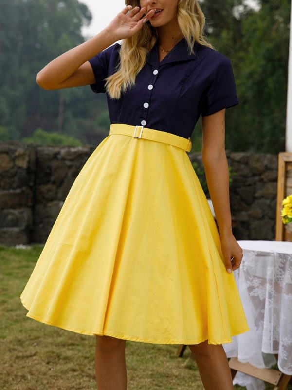 Retro Plaid Stitching Short Sleeve Dress