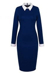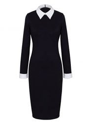 Black Dress For Women Turn Down Collar Long Sleeve Midi Pencil Dresses