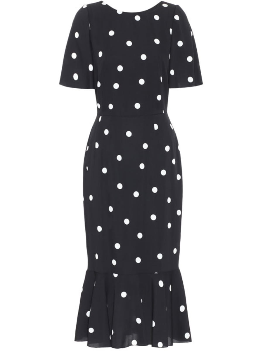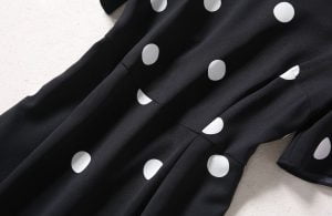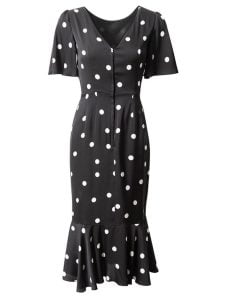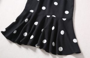 Black Dress Retro Polka Dot Slim Chiffon Ruffle Hem Long Dress