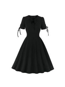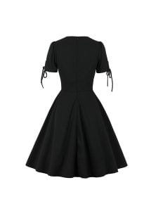 Black Dress Short Sleeve 1950s Vintage Swing Dress