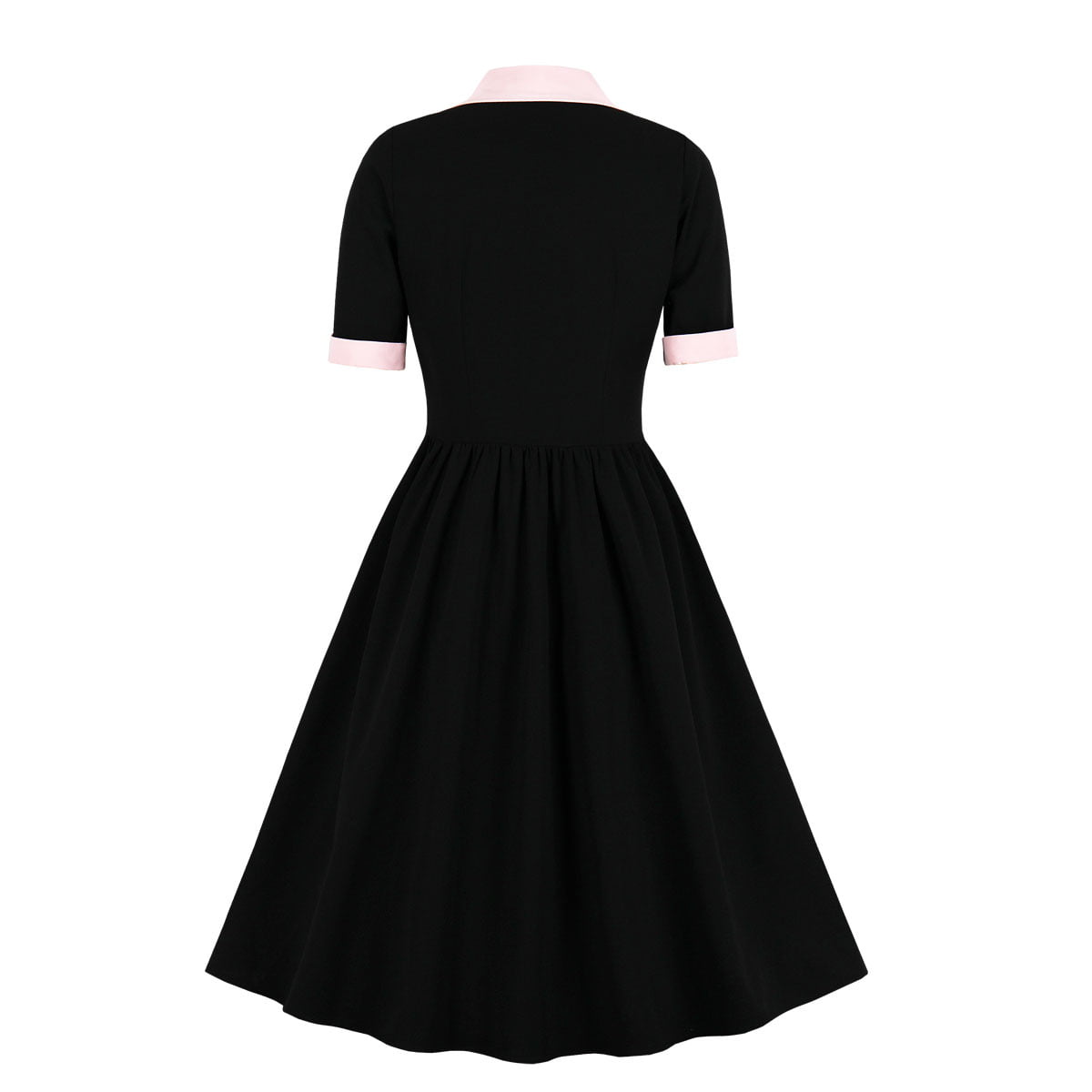 Black Prom Dress For Women Pink Bow Stitching Single Breasted Swing Dress