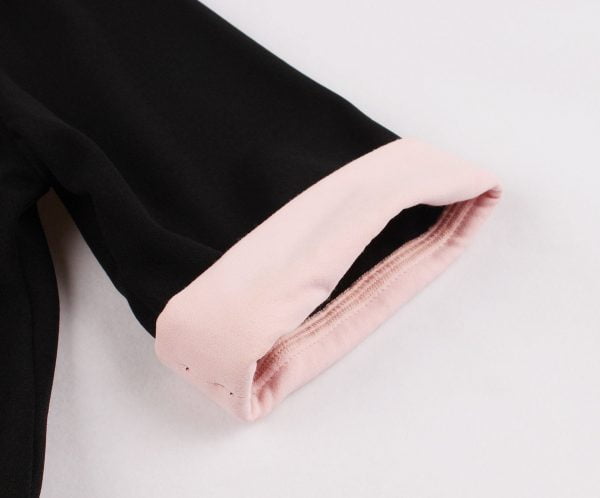 The unique design of the pink bow stitching neckline adds activity to this prom dress; The pink color of the cuffs also echoes the neckline. which complements each other perfectly;