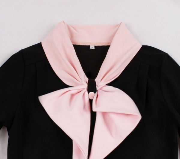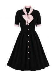 Black Prom Dress For Women Pink Bow Stitching Single Breasted Swing Dress