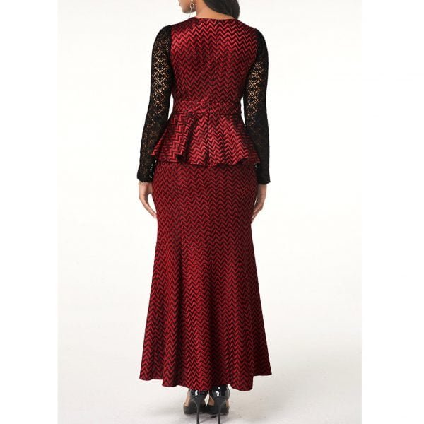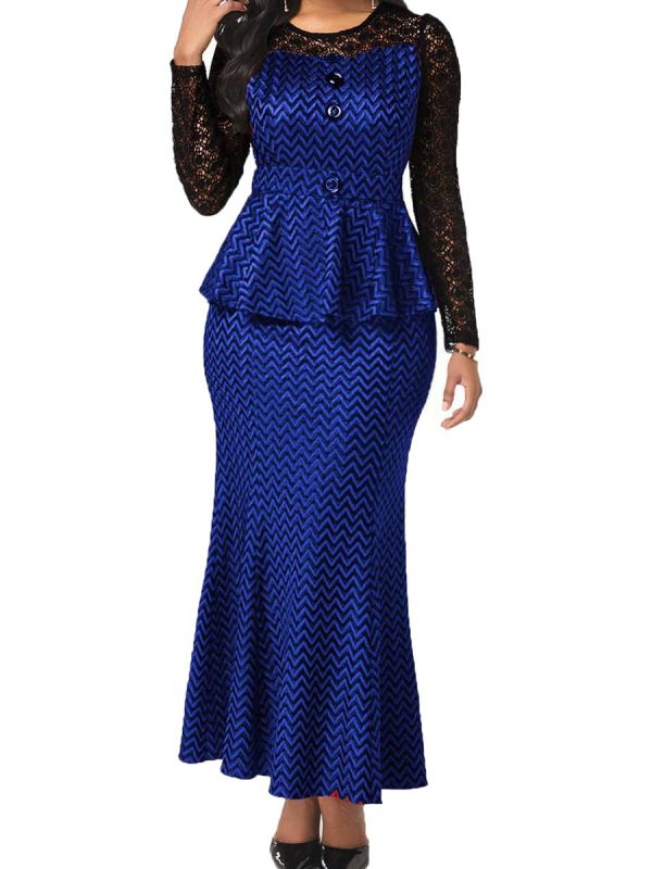 Long sleeve crop top and maxi skirt set is simple but classic; The bodycon dresses match with the design of lace patchwork shows your charming body curve and makes you elegant and fashionable;
