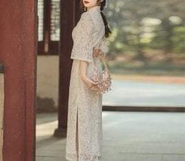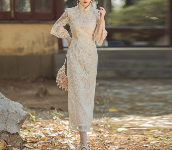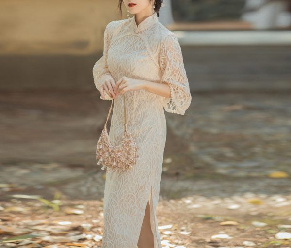 The classic cheongsam dress is paired with loose three-quarter sleeves and prints covering the entire dress. making this dress a perfect blend of the retro and modern atmosphere; When you wear it. you will be the focus of the crowd;