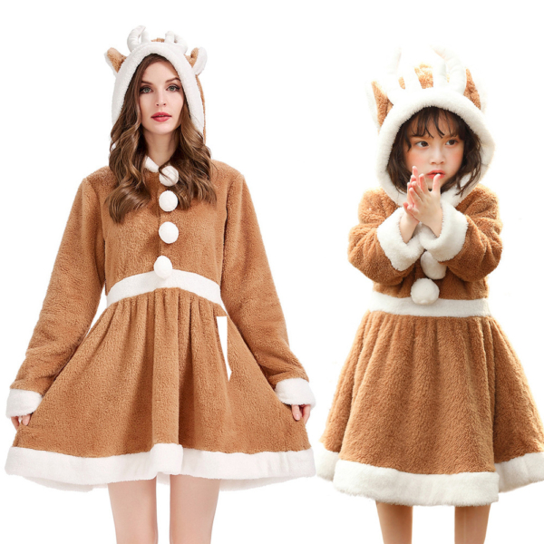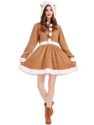 Christmas Khaki Reindeer Cosplay Costumes Leisure Household Hooded Dress