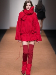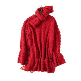 Christmas Red Sweater Dress Loose Knitted Sweater Dress with Scarf