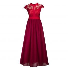 Dress For Wedding Lace Mesh Stitching Hollow A-line Maxi Swing Dresses