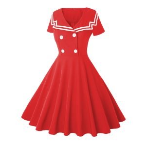 1950s Plaid Dress Short-sleeved Mid-waist Swing Dress