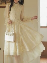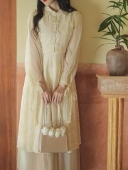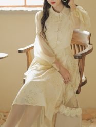 The floral embroidered blouse and the auspicious cloud button design make this dress suit retro and fashionable; The inner dress adopts a multi-layer mesh design. which looks light. making you look more elegant;