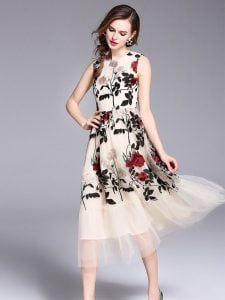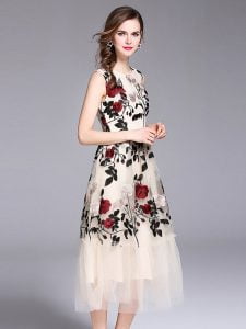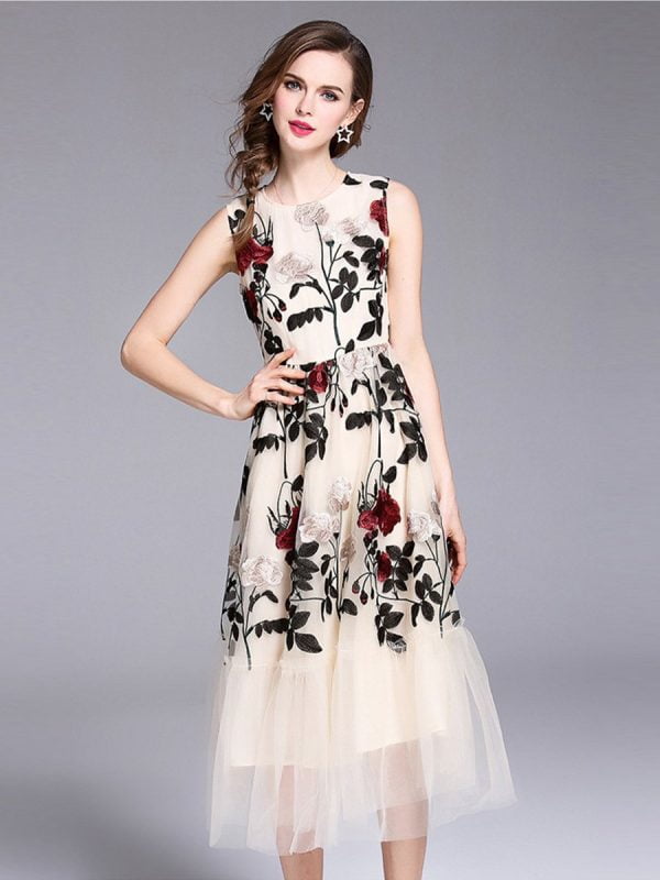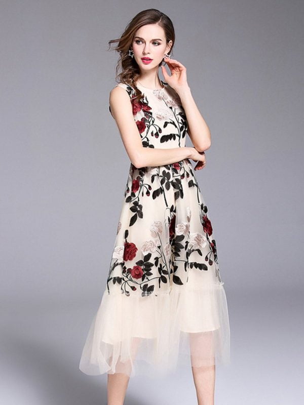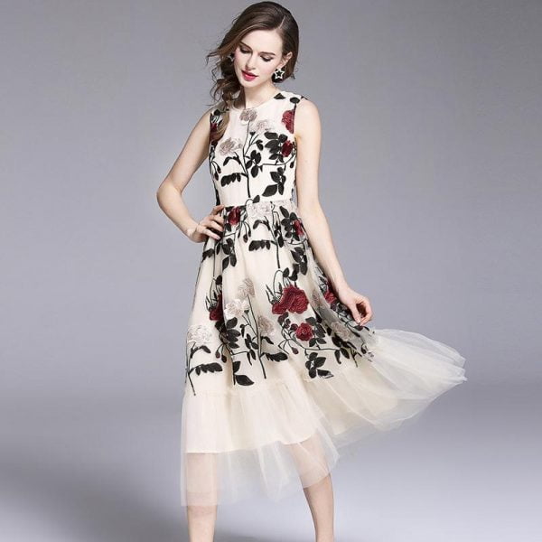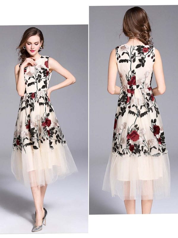 Elegant Lace Dress Flowered Embroidered Sleeveless Dresses for Party